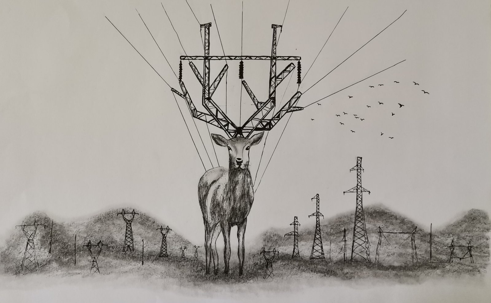 - Charcoal and pencil